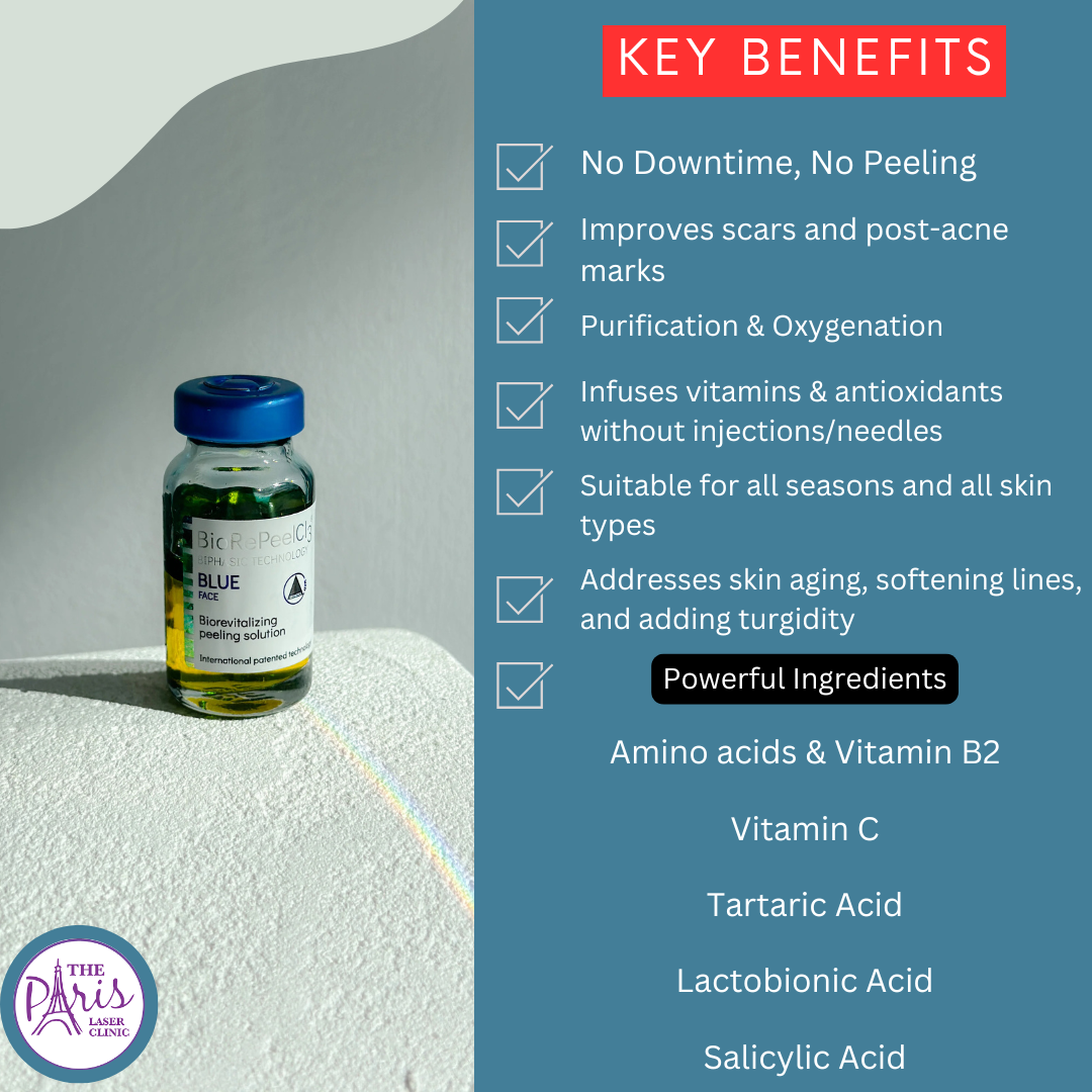 Experience the ultimate skin renewal with our Signature BioRePeel. This advanced treatment combines the power of natural enzymes and acids to exfoliate dead skin cells, unclog pores, and stimulate collagen production. Ideal for addressing fine lines, uneven skin tone, acne and scarring. Our BioRePeel leaves your skin feeling refreshed, rejuvenated, and visibly glowing with minimal downtime